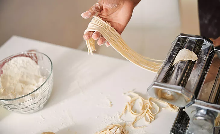 Abra a massa com um rolo ou máquina e corte no formato desejado.